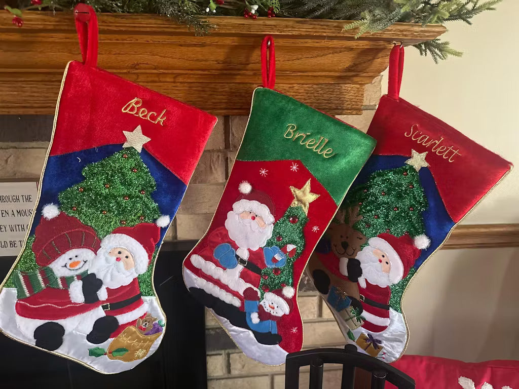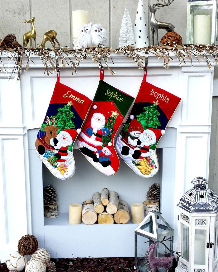 Red and White Embroidered and Embellished Santa with Glitter Presents Christmas Stocking